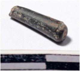 | Description / विवरण | A fragment of a stone drill bit circular in section broken both end of smooth surface. |