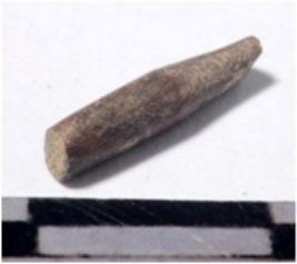 | Description / विवरण | A fragment of a stone drill bit, broken both end of smooth surface. |