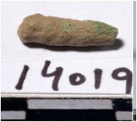 | Description / विवरण | A fragment of a copper nail circular in section broken from one end of rough surface. |