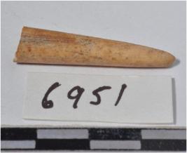 | Description / विवरण | A fragment of bone point, pointed at one end, circular in section and smooth surface. |