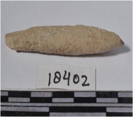 | Description / विवरण | A fragment of a bone point, circular in section and rough surface. |