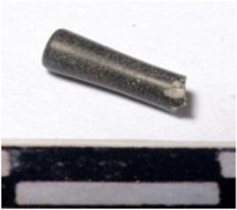 | Description / विवरण | A fragment of a stone drill bit circular in section broken from one end of smooth surface. |