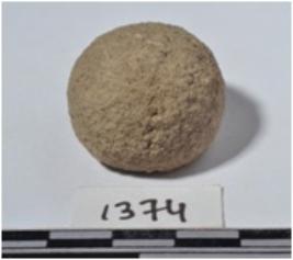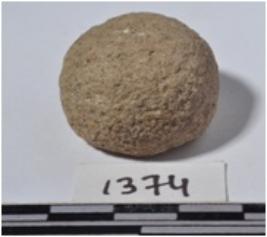 | Description / विवरण | A stone sling ball, round in shape of rough surface. |