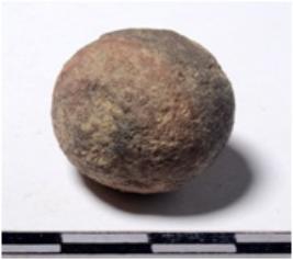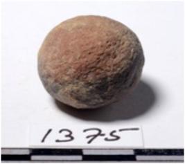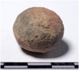 | Description / विवरण | A terracotta sling round in shape of rough surface. |