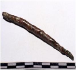 | Description / विवरण | A fragment of a copper rod broken from both end circular in section of rough surface. |