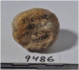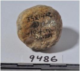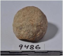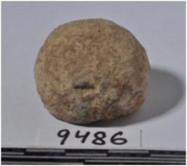 | Description / विवरण | A stone sling ball, round in shape of rough surface. |