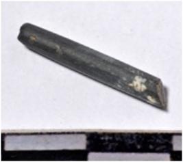 | Description / विवरण | A fragment of a stone drill bit, circular in section, broken from both end of smooth surface. |
