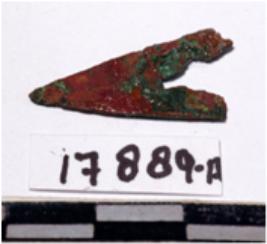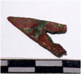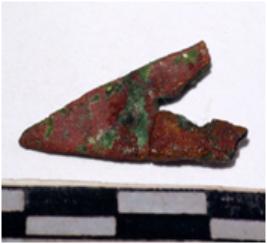 | Description / विवरण | A copper arrow head, triangular shaped pointed end of rough surface. |