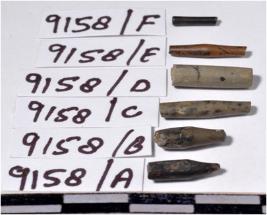 | Description / विवरण | Fragments of stone drill bits, pointed one end, circular in section of smooth surface. |