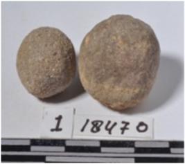 | Description / विवरण | A stone sling ball, round in shape of rough surface. |