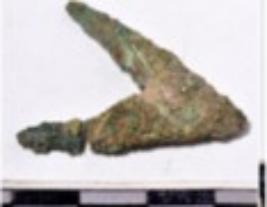 | Description / विवरण | A fragment of a copper arrow head triangular in shape having pointed at one end of rough surface. |