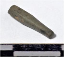 | Description / विवरण | A fragment of a stone drill bit, circular in section, pointed one end of smooth surface. |
