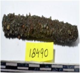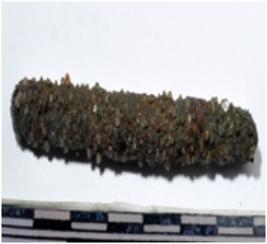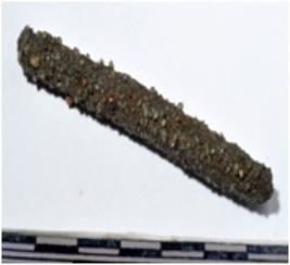 | Description / विवरण | A fragment of a copper rod, broken both end, circular in section of rough surface. |