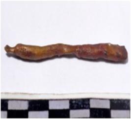 | Description / विवरण | A copper arrow head, pointed one side of rough surface. |