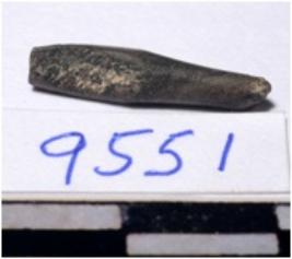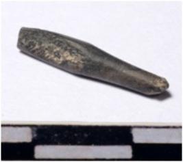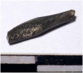 | Description / विवरण | A fragment of a stone drill bit circular in section pointed on one end of smooth surface. |