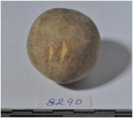 | Description / विवरण | A stone sling ball, round in shape of rough surface. |