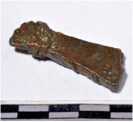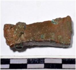 | Description / विवरण | A fragment of a copper chisel elongated profile slightly curved on upper side having sharpen of smooth surface. |