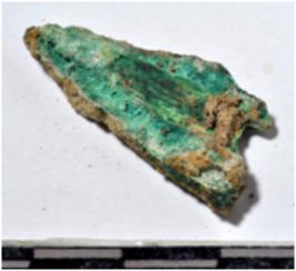 | Description / विवरण | A fragment of a copper arrow head triangular in section pointed at one end of rough surface. |