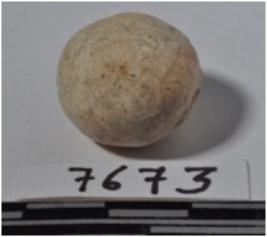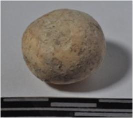 | Description / विवरण | A stone sling ball, round in shape of smooth surface. |