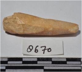 | Description / विवरण | A fragment of a bone point having broken edge one side of smooth surface. |