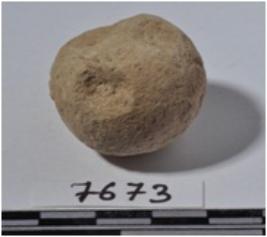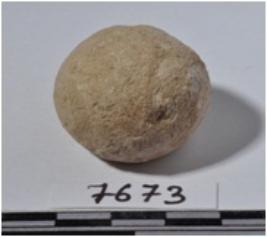 | Description / विवरण | A fragment of a stone sling ball, circular in section of rough surface. |