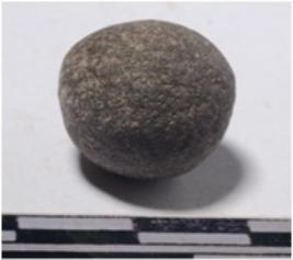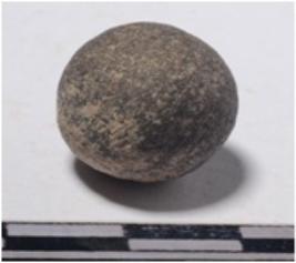 | Description / विवरण | A small stone sling ball, round in shape of smooth surface. |