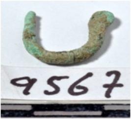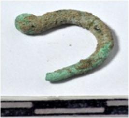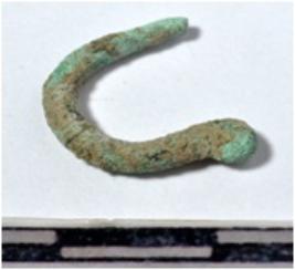 | Description / विवरण | A fragment of a copper hook circular in section of rough surface. |