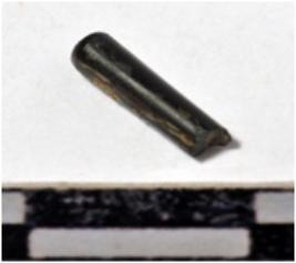 | Description / विवरण | A fragment of a stone drill bit, circular in section broken from both end of smooth surface. |