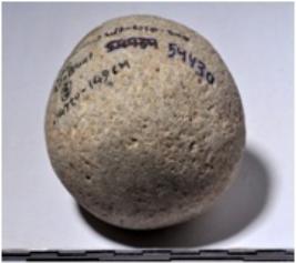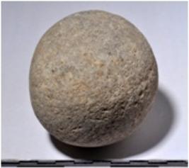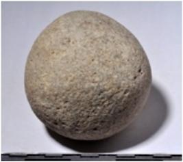 | Description / विवरण | A stone sealing ball, round in shape and section of rough surface. |