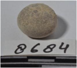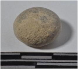 | Description / विवरण | A stone sling ball, round in shape of rough surface. |
