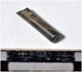 | Description / विवरण | A fragment of a stone drill bit, circular in section broken from both end, of smooth surface. |