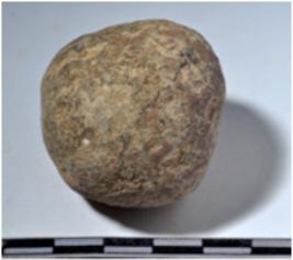 | Description / विवरण | A stone sling ball round in shape of rough surface. |