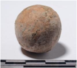 | Description / विवरण | A stone sling ball round in shape of rough surface. |