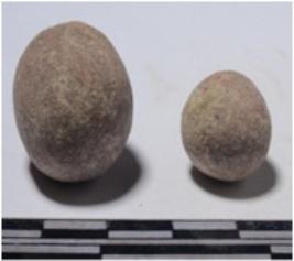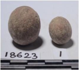 | Description / विवरण | A stone sling ball, round in shape of smooth surface. |