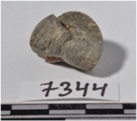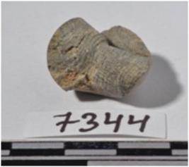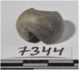 | Description / विवरण | A fragment of a stone sling ball, circular in section of polished surface. |