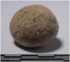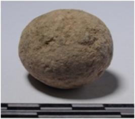 | Description / विवरण | A stone sling ball, round in shape of rough surface. |