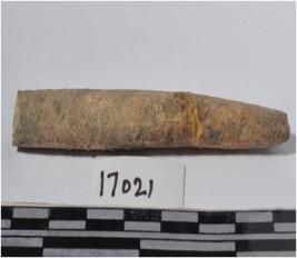| Description / विवरण | A fragment of a bone point having pointed one side circular in section of rough surface. |