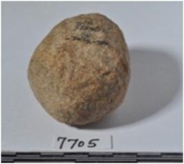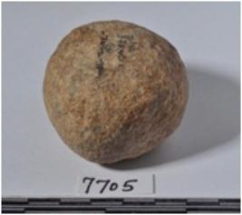 | Description / विवरण | A stone sling ball round in shape of rough surface. |
