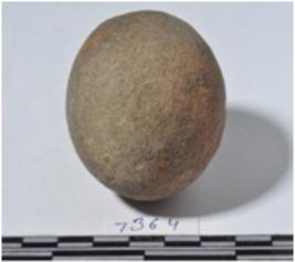 | Description / विवरण | A stone sling ball round in shape of rough surface. |
