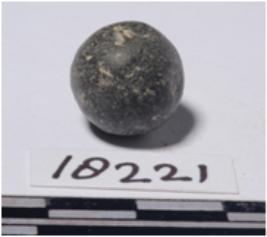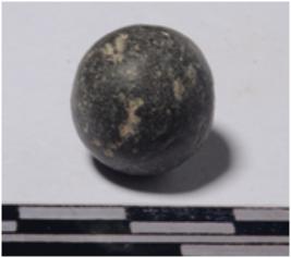 | Description / विवरण | A small stone sling ball round in shape of smooth surface. |