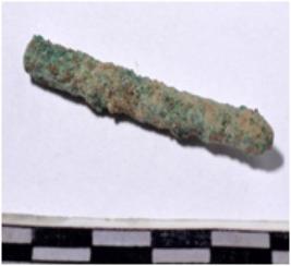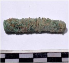 | Description / विवरण | A fragment of a copper rod, broken both end, circular in section of rough surface. |