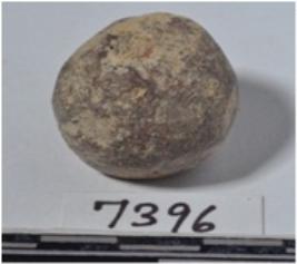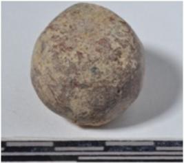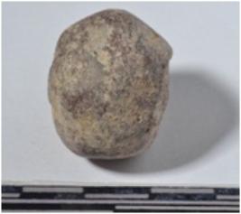 | Description / विवरण | A small stone sling ball round in shape slightly broken of smooth surface. |