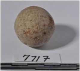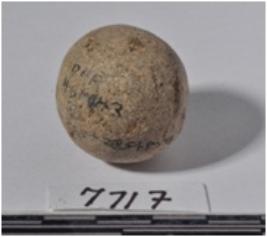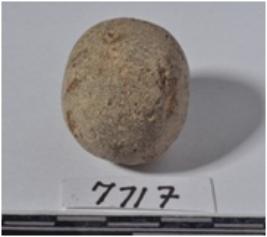 | Description / विवरण | A small stone sling ball round in shape of rough surface. |