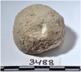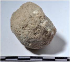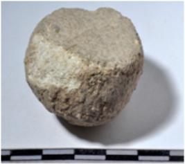 | Description / विवरण | A fragment of a stone sling ball, round in shape circular in section of rough surface. |