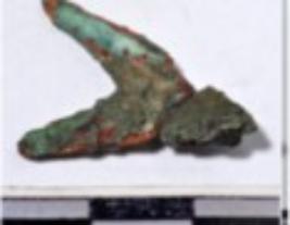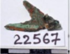 | Description / विवरण | A fragment of a copper mended triangular shaped arrow head, having pointed one end of rough surface. |