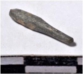 | Description / विवरण | A stone drill bit circular in section pointed at one end of smooth surface. |