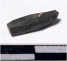 | Description / विवरण | A fragment of a stone drill bit circular in section pointed on one end of smooth surface. |