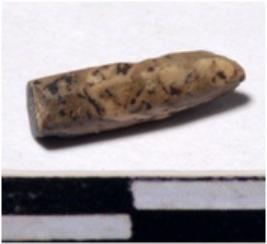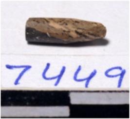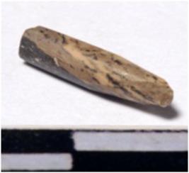 | Description / विवरण | A fragment of a stone drill bit circular in section pointed on one end of smooth surface. |