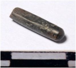 | Description / विवरण | A fragment of a stone drill bit circular in section broken from one end of smooth surface. |