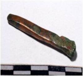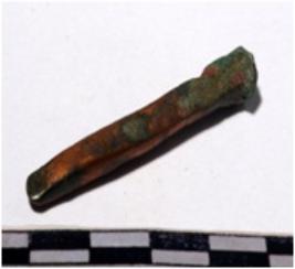 | Description / विवरण | A copper chisel circular in section sharpen at one side of smooth surface. |
